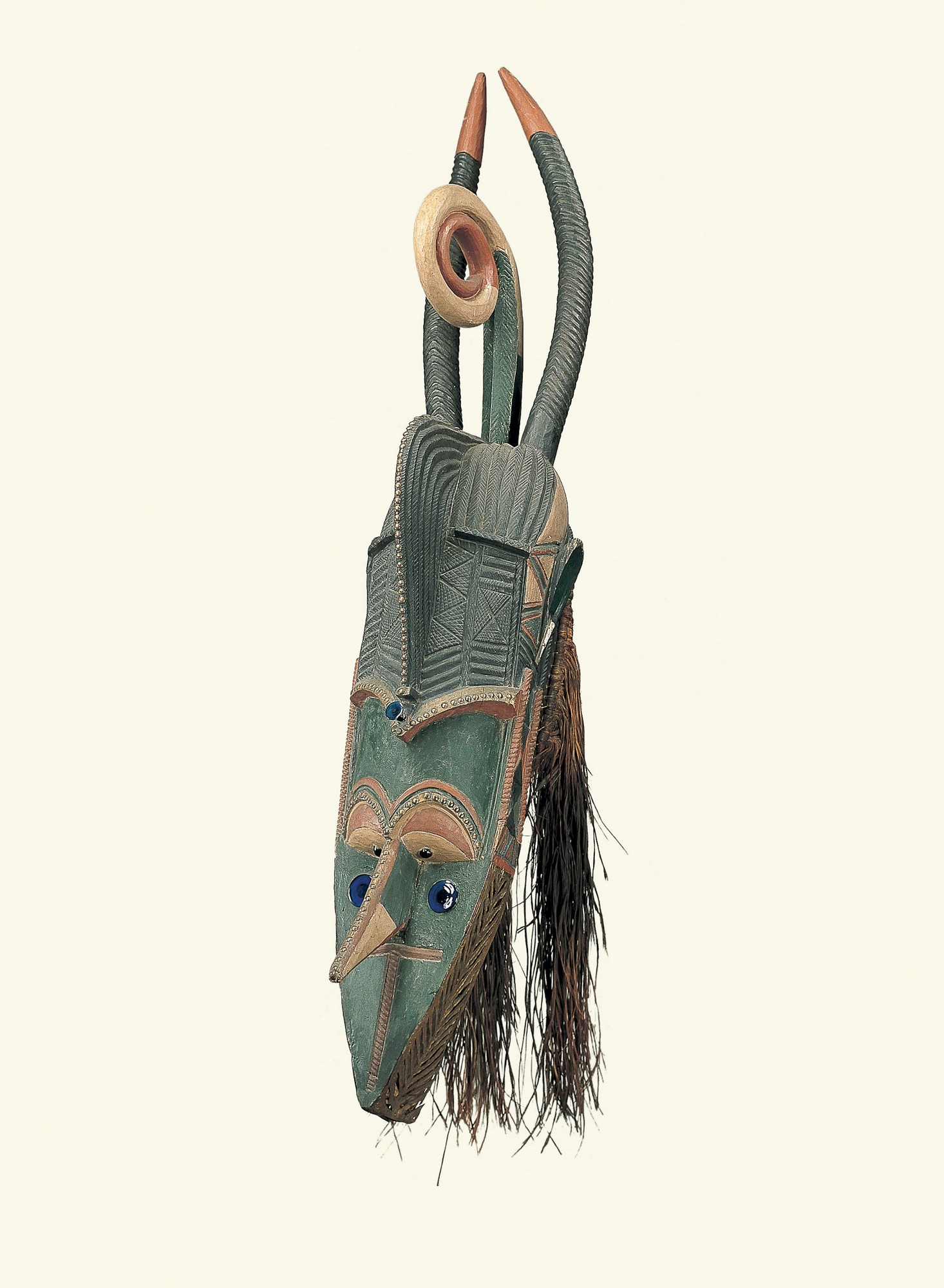 A mask that served as protection against various dangers. An important presence in various ceremonies, particularly initiation rituals. It depicts the elements of water (crocodile), forest (antelope, chameleon, snake) and man.